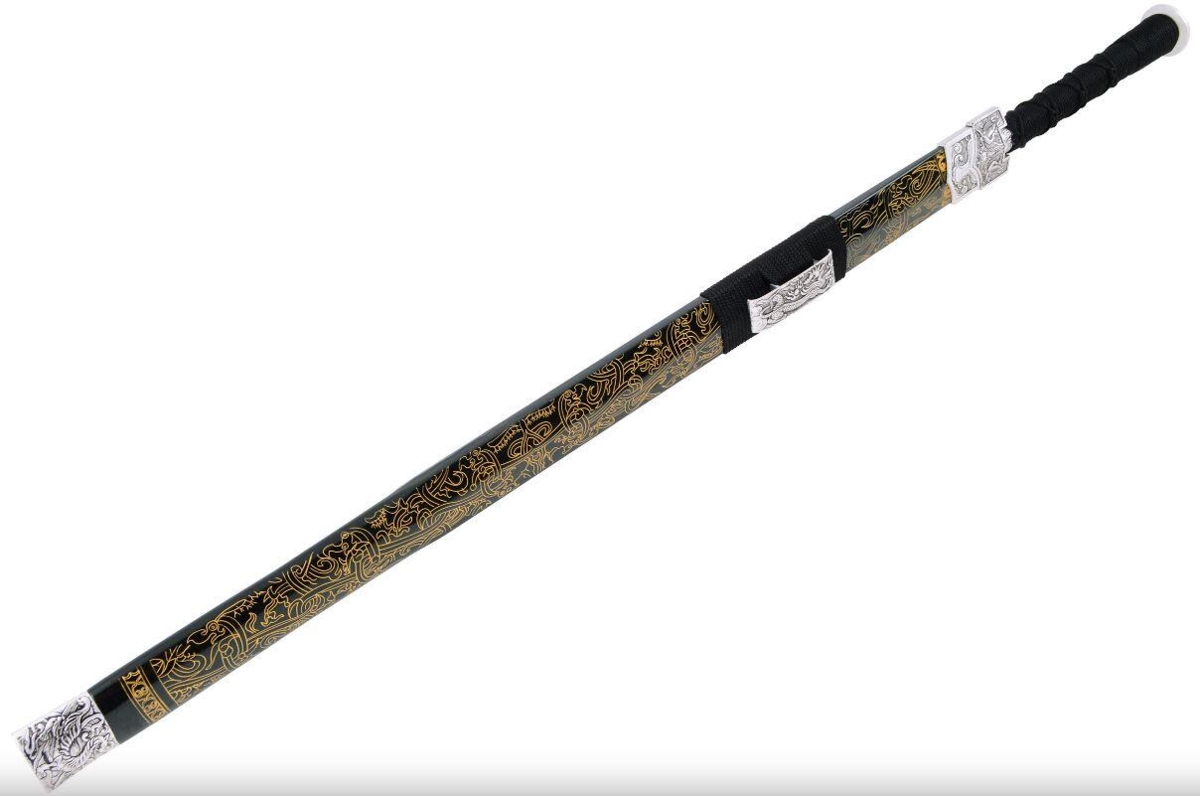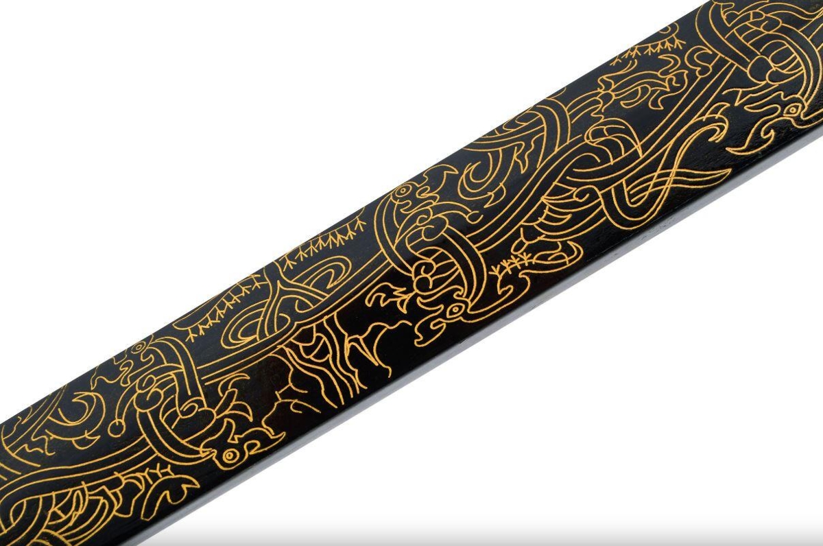 - Skede og Mønster: Sværdet leveres med en sort lakeret skede, smukt indgraveret med et gyldent mønster, der tilføjer en luksuriøs touch. Mønsteret fremhæver enestående skønhed og elegance.