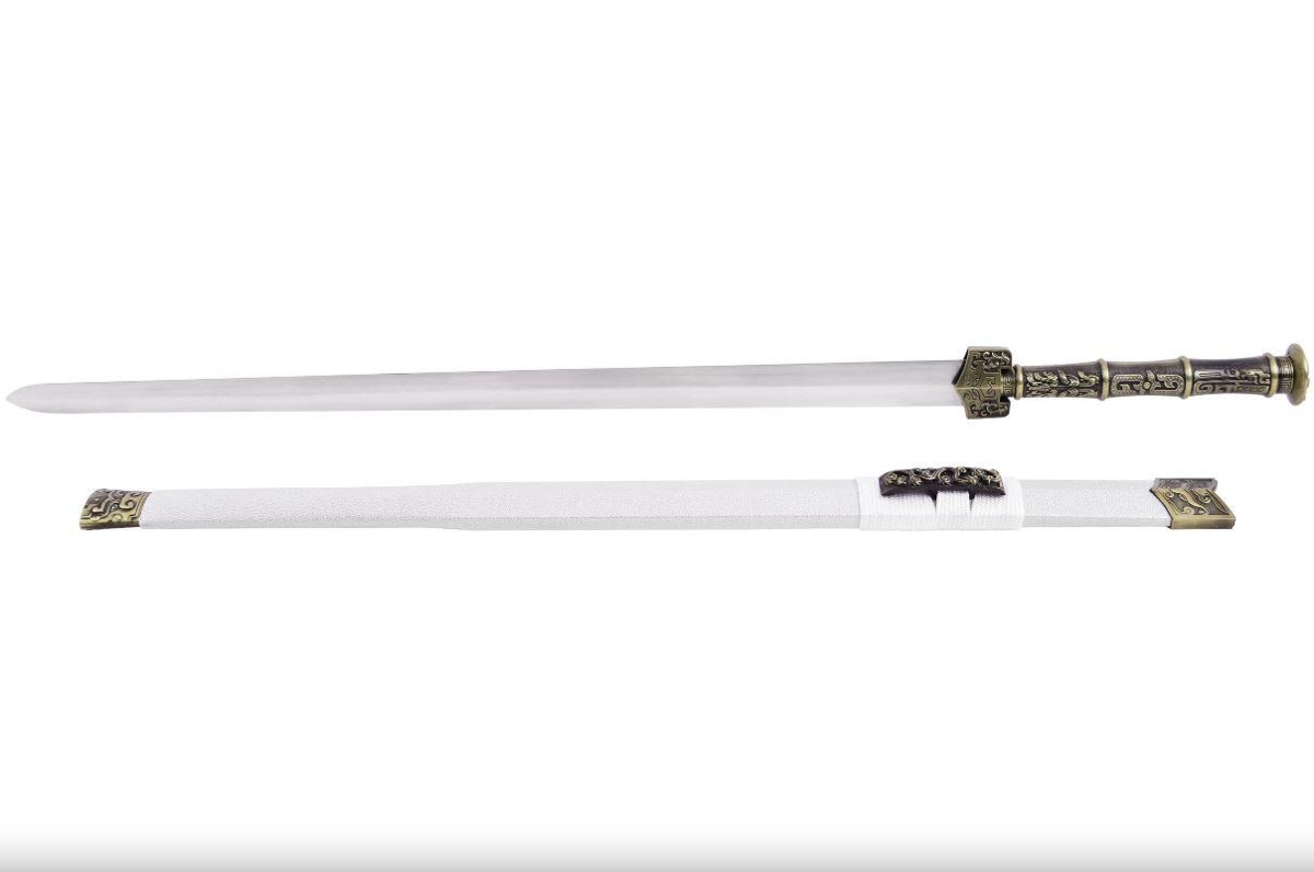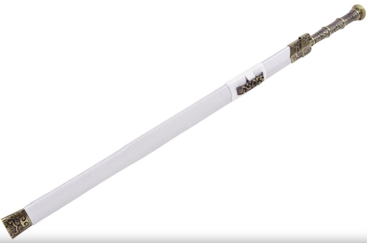 Dette imponerende sværd, håndlavet af GuJianXuan Forge, er en hyldest til kinesisk kultur. Med et "Hajhud" effekt hvid skede og dekorative detaljer i Zamak-zink, forener det æstetik og funktionalitet perfekt.
