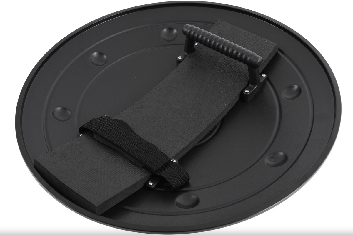 Skjoldet har et stabilt 2-punkts greb, bestående af et fast håndtag og et justerbart Velcro-greb, hvilket gør det nemt at tilpasse til både højre- og venstrehåndede brugere. Konstruktionen sikrer, at skjoldet ligger stabilt i hånden, selv under hurtige bevægelser og gentagne slag.