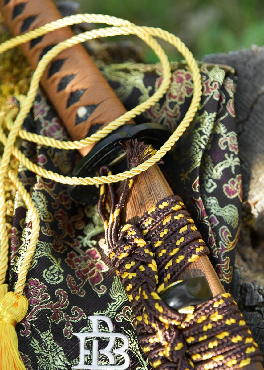 Fuchi, kashira og tsuba er fremstillet af sortjern, mens habaki og seppa-pladerne er udført i messing for at skabe en flot kontrast og fremhæve katanas stilrene og harmoniske design.