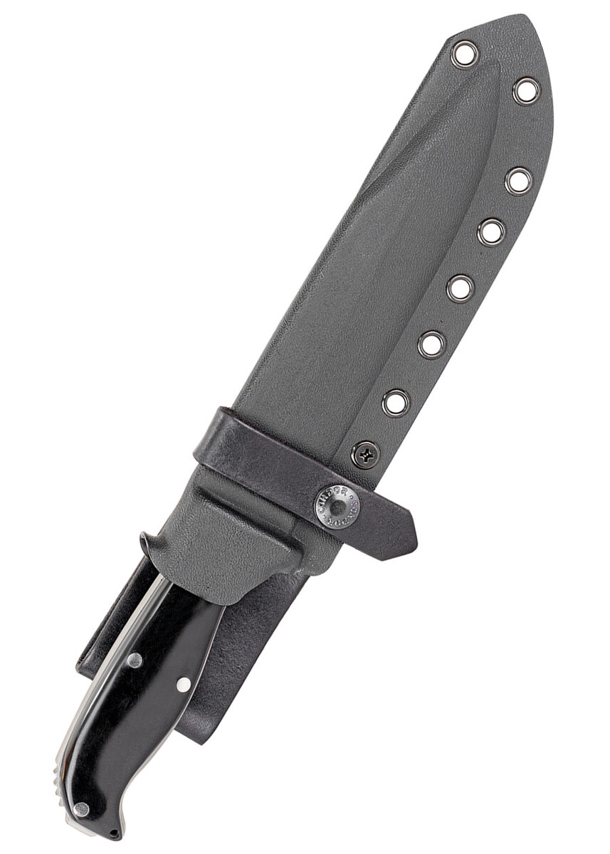 Kniven leveres med en skræddersyet Kydex-skede, som holder kniven sikkert på plads og gør det nemt at bære den på bæltet eller udstyr. Den lette, men solide konstruktion gør Enduro til en trofast makker på ethvert eventyr.