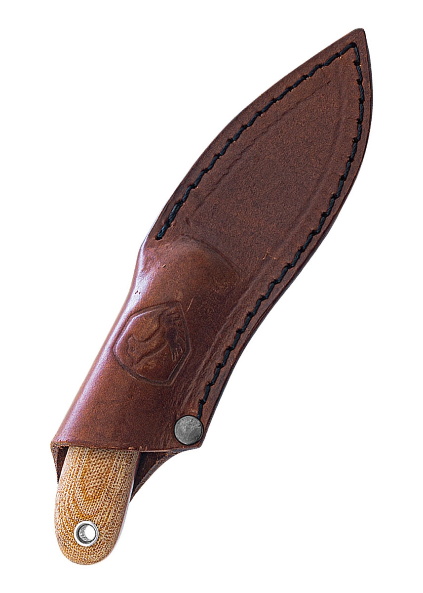 Skæftet er fremstillet af slidstærkt Micarta, som giver et sikkert greb i både tørre og fugtige omgivelser. Det ergonomiske design sikrer komfort, selv ved længere tids brug, mens den kompakte profil gør kniven hurtig at håndtere.