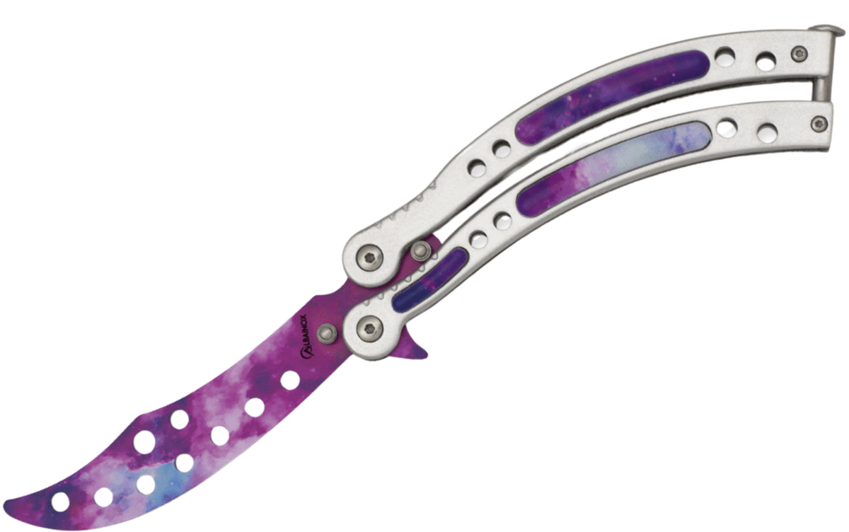 Med et iøjnefaldende galakse-inspireret lilla design, skiller Galax-modellen sig ud i både funktion og æstetik. Den realistiske form og balancerede vægt gør det muligt at træne med en oplevelse, der minder om en ægte butterflykniv, uden nogen skæreeffekt.