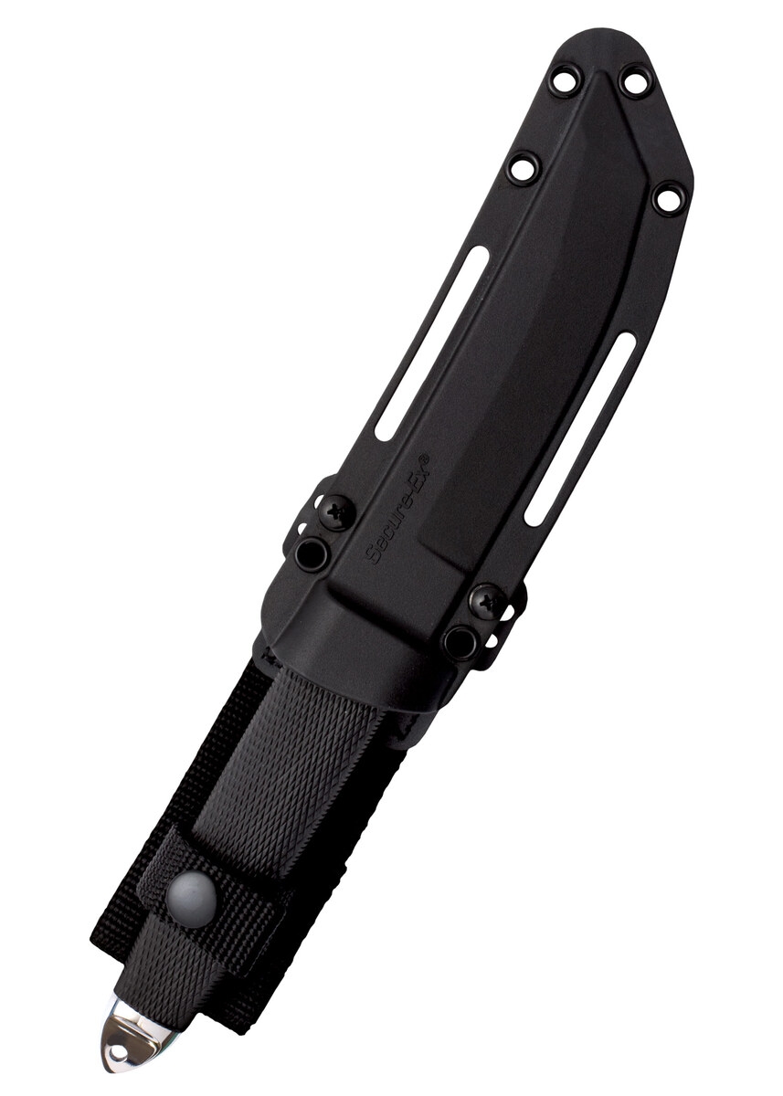 Kniven leveres med en Secure-Ex® skede, der sikrer sikker opbevaring og hurtig adgang. Skeden er robust og bygget til at modstå intensiv brug, hvilket gør den ideel til både militære og udendørs anvendelser.