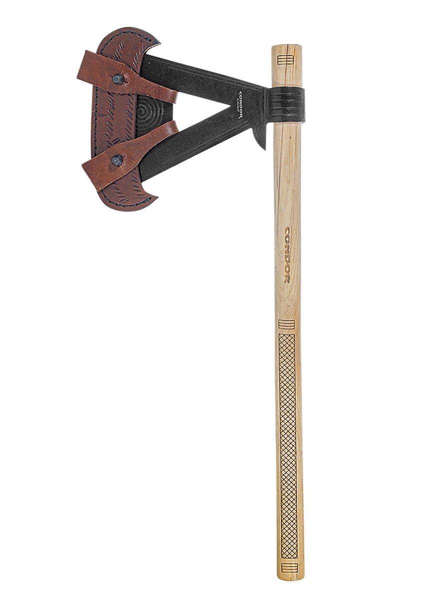 Øksen leveres med en specialdesignet læderskede, som passer til dens karakteristiske kanoformede profil.