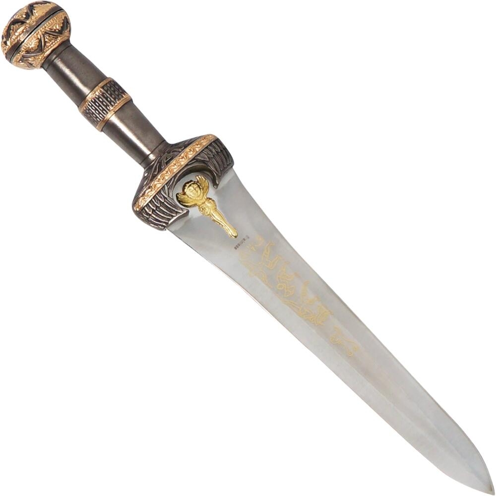 Græsk dolk med skede - prydet med gyldne illustrationer af mænd med spyd