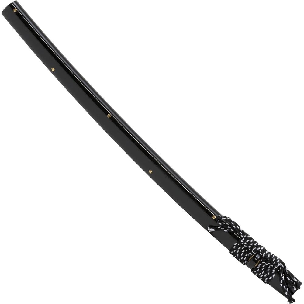 Temaet for dette smukke Samuraisværd kan blive fundet i de blomster dekorationer der ses spredt udover Tsuba og skæftet. En jordbunden Katana der med sit naturnære design virkeligt visuelt binder sjælen til det. Den smukke sort højglans lakeret skede (saya) viderefører elegant, eksklusivt og diskret blomster temaet med sine udspredte guld blomster.