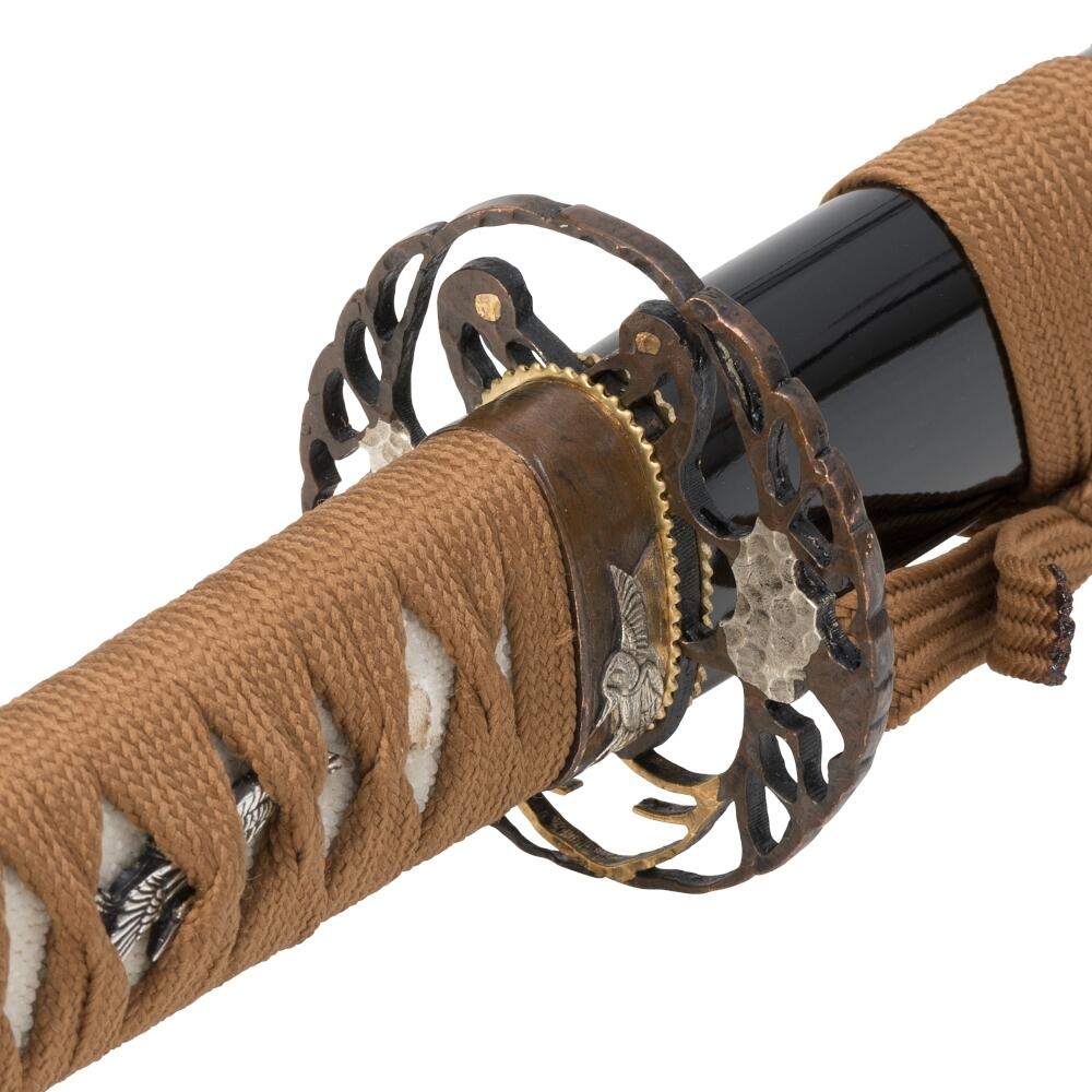 • Tsuba: Udsmykket med et detaljefyldt tranedesign, der symboliserer lykke og lang levetid.