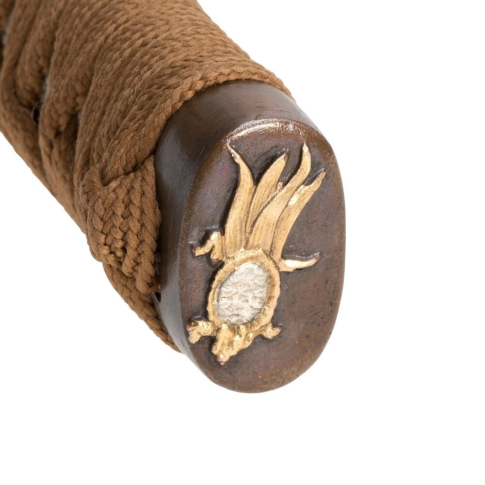 • Hæfte (Tsuka): Lavet af træ og belagt med ægte rokkeskind, med to menukis. Hæftet er traditionelt indpakket i brun bomuld, hvilket giver et autentisk og sikkert greb.