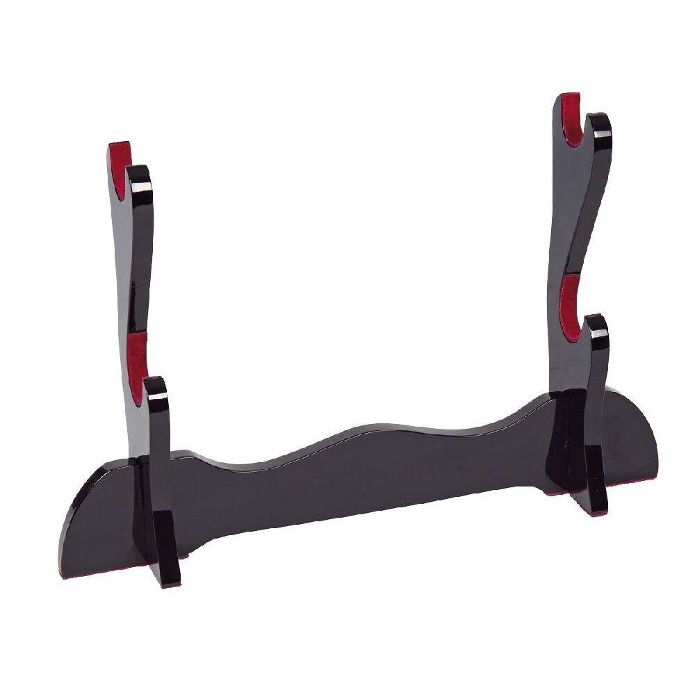 John Lee bordstativ til to samuraisværd er et stilrent og funktionelt udstillingsstativ i sortlakeret træ. Med foret støtte og plads til to katana eller wakizashi er det ideelt til præsentation af daisho-sæt og japanske sværd i samlingen.