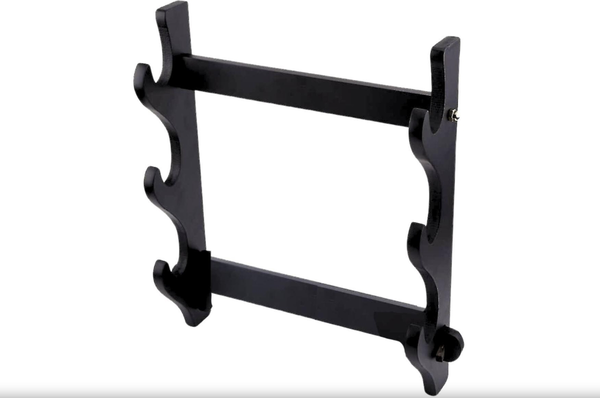 Vægstativ Til Tre Katana - Elegant vægstativ i sort træ til op til tre våben (katanaer, sværd). Let at samle med fire dele. Robust konstruktion og stilfuldt design. Perfekt til at fremvise din våbensamling.