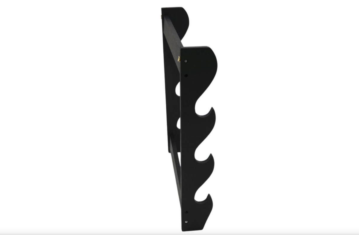 Design og Materialer: Vægstativet er fremstillet af holdbart træ og malet i en elegant sort farve. Det enkle og rene design sikrer, at dine våben bliver præsenteret på en sofistikeret og stilfuld måde.