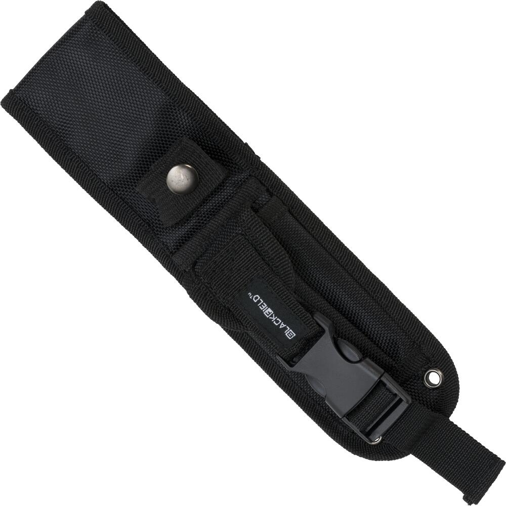 Denne taktiske kniv imponerer med sin bladtykkelse på 5 mm. Den sortbelagte klinge er lavet af 440 rustfrit stål. Det påskruede håndtag er lavet af  G10 og ligger sikkert i hånden. Nylonskeden tilbyder forskellige bæremuligheder og har en frontlomme.