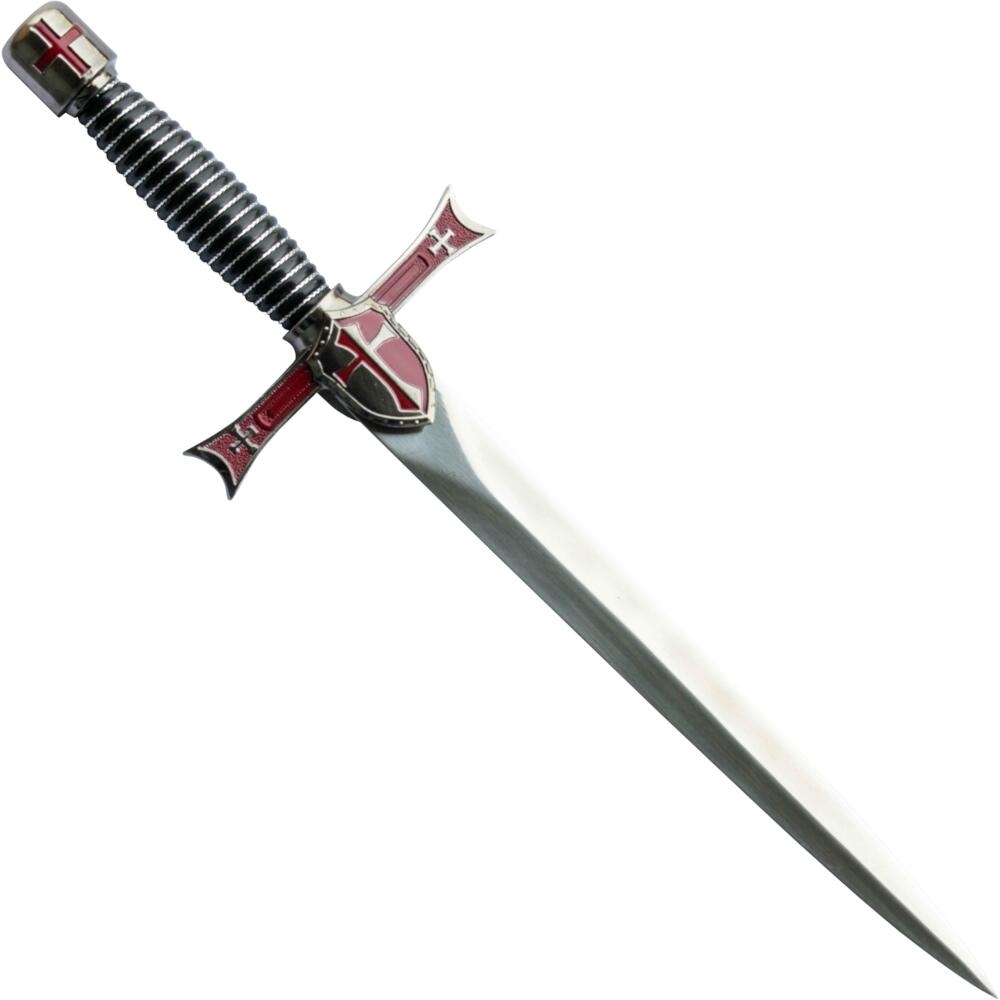 Imponerende Design: Inspireret af historiske tempelriddere med et blad af 420 rustfrit stål og et stilfuldt håndtag af syntetiske materialer.