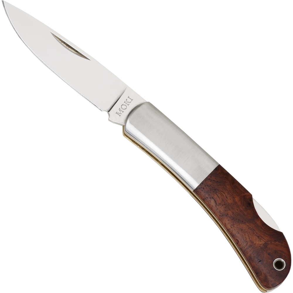 Moki Meek Lommekniv er den perfekte kombination af funktionalitet og æstetik i en kompakt form. Med sit unikke træhåndtag, præcise stålblad og lette design er denne lommekniv en ideel følgesvend for dem, der søger en lille, men kraftfuld kniv med et smukt udseende.