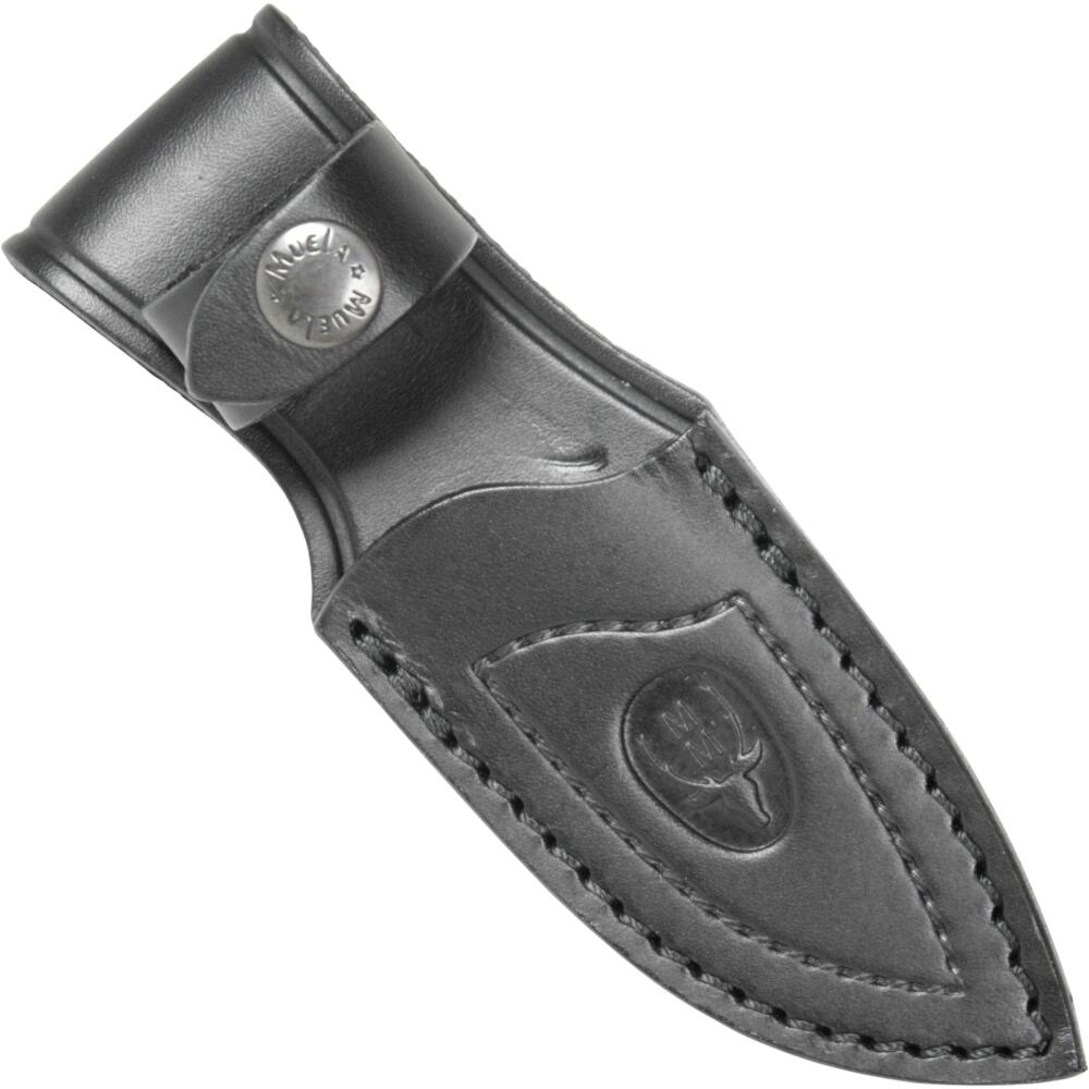 Muela Ibex Kniv leveres med en højkvalitets læderskede, der gør det nemt at bære kniven sikkert i bæltet og beskytter den, når den ikke er i brug.