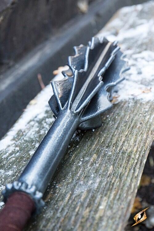 Demon Slayer er en solid latexkølle til den årvågne fighter, der befri verden for unaturlige farer. Hoved har otte smalle og taggede flanger, hver ca. 32 cm lange. Håndmalet detaljer giver blonderhovedet og skaftet en realistisk mat stålfinish. 16 cm håndtaget er pakket i split læder for et solidt greb.