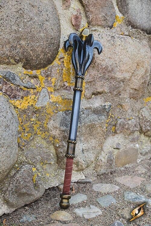 Fleur Mace er en 88 cm enhåndskølle med et dekorativt design. Det har et stort hoved med fem kroge flanger og en spids "krone"