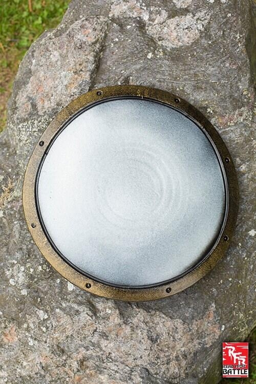 Buckler er et lille, alsidigt latexskjold inspireret af dygtige sværdkæmpere gennem historien. Denne 36 cm runde skjold har et neutralt design, der passer til mange karaktertyper, formet og malet til at ligne træ omkranset med strålende, skinnende jern.