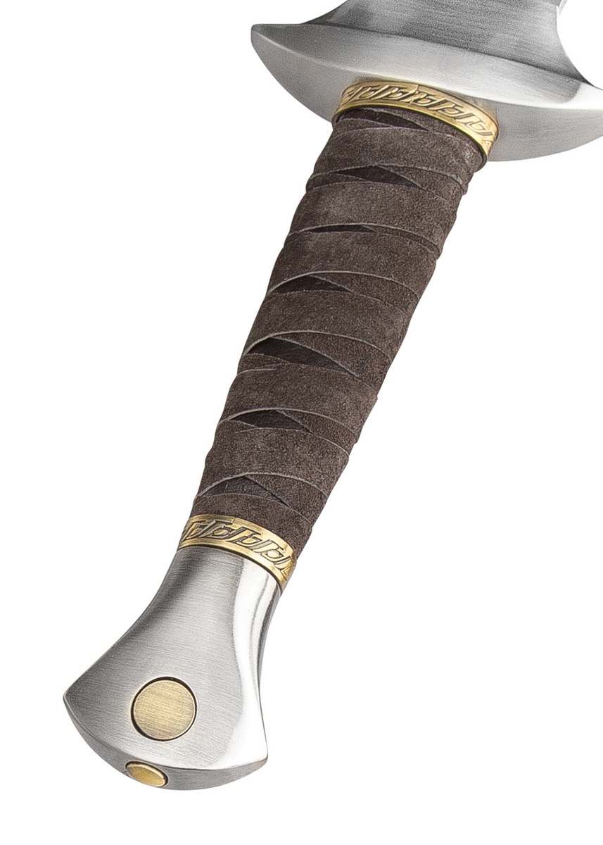 Denne detaljerige replika er en nøjagtig gengivelse af den originale rekvisit, som blev brugt under optagelserne til filmtrilogien. Sværdet er fremstillet af United Cutlery, som er internationalt anerkendt for deres høje kvalitet og kompromisløse fokus på autenticitet. Den karakteristiske bladformede klinge i rustfrit stål giver sværdet et elegant og historisk korrekt udtryk. Parérstang og pommel er udført i metal, mens grebet er omviklet med ægte læder for et autentisk look og behagelig håndtering.