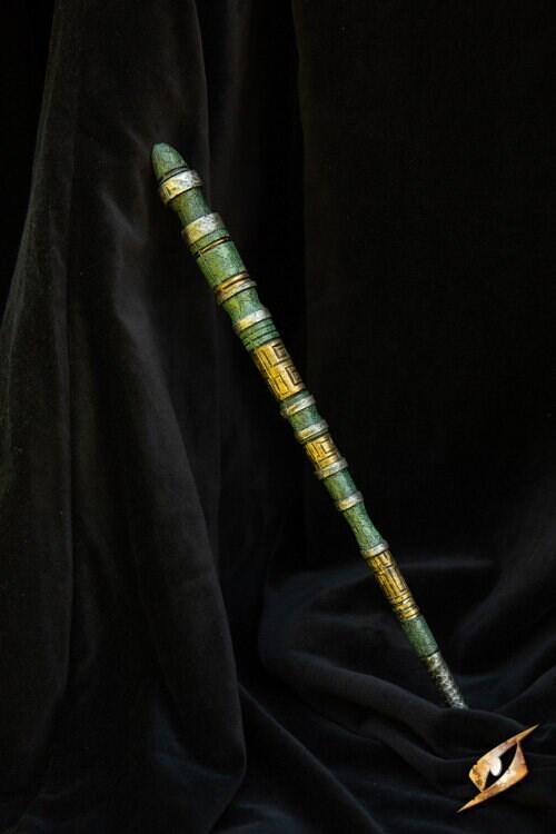 Med en bøjelig kerne, fuldt belagt med PU-materiale, der er meget detaljeret og håndmalet. Tryllestave med en bøjelig kerne kan bøjes på en hvilken som helst måde, du ønsker. Dette gør det muligt at skabe en tryllestav med et meget mere behageligt greb for brugeren.